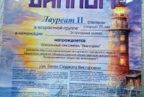 По результатам оценки жюри, вокальный ансамбль "Виктория" удостоен звания ЛАУРЕАТА II СТЕПЕНИ. Особое признание получила композиция "Ромашка белая", вызвавшая положительный отклик у зрителей и членов жюри.